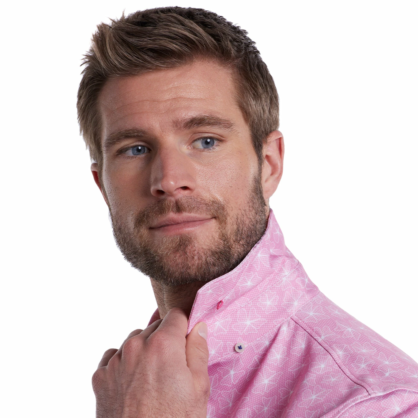 • Self-stay collar featuring our signature under-buttons