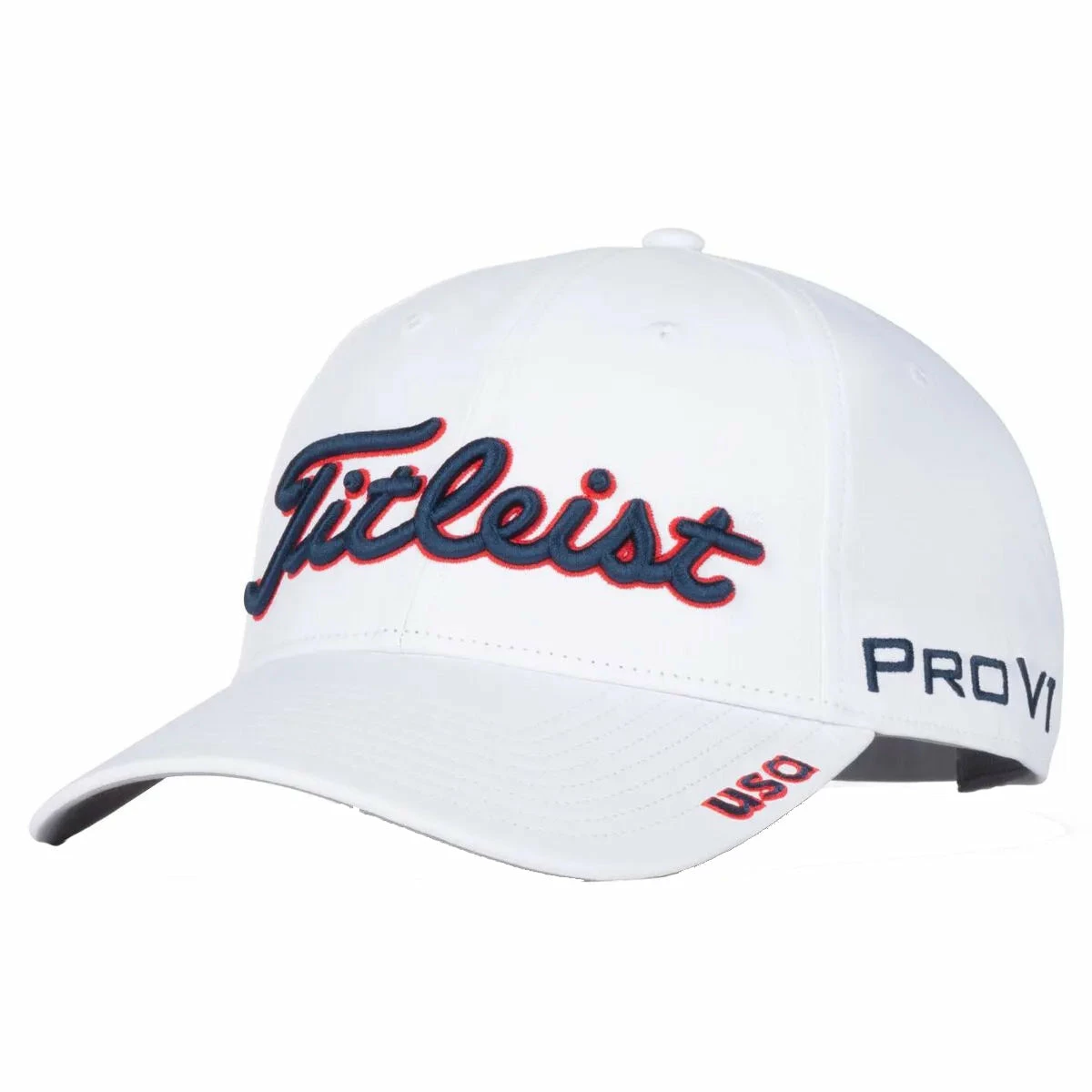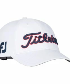 Show your American Pride with the Titleist Stars and Stripes Performance Golf Hat. This special edition hat features a design inspired by the red, white and blue of the American flag and features an embroidered USA logo on the brim. There is an antimicrobial, moisture wicking sweatband that will keep your head dry and comfortable throughout the round and the stretch clasp closure provides a secure, comfortable fit.