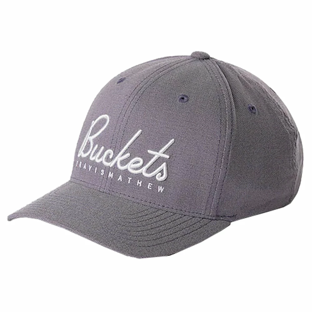 Complete your outfit with the TravisMathew No Curfew 2.0 Golf Hat. The No Curfew is a fabric snapback hat that features Flexfit 110 technology that has a stretch sweatband for a comfortable fit. The adjustable back closure provides a secure fit and the Buckets embroidery and surprise underbill print of buckets and beers adds a touch of style to keep you looking good on and off the golf course.